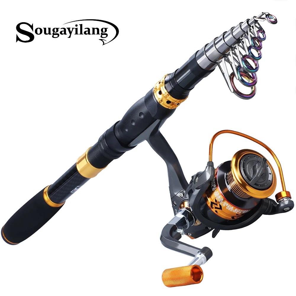 Best Product Sougayilang Carbon Fiber Spinning Fishing Rod Pole and Fishing Reel Combo Telescopic Carp Sea Fishi