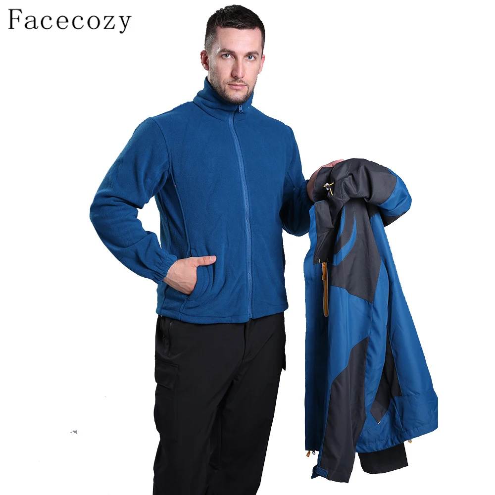New Product Facecozy Men Winter Outdoor Sport Hooded Softshell Hiking Jacket Male 2 Pieces Removable Windproof